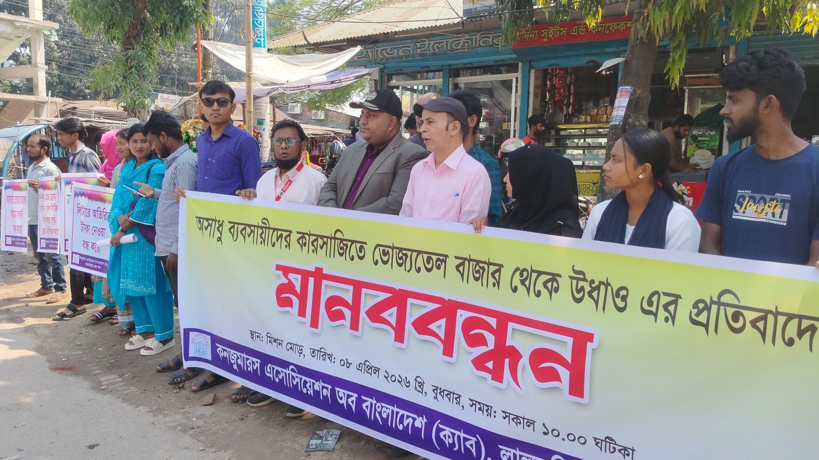 নন ফুড গ্রেড ড্রামের তেল সংরক্ষণ ও বিক্রি তাৎক্ষণিকভাবে বন্ধ করা। ভোজ্য তেলের জন্য ফুড গ্রেড পাত্র ব্যবহার বাধ্যতামূলক করার দাবিতে লালমনিরহাটে মানববন্ধন অনুষ্ঠিত হয়েছে। বুধবার সকালে জেলার মিশন মোড়ে এ মানববন্ধন কর্মসূচি অনুষ্ঠিত হয়। কনজুমারস এসোসিয়েশন অব বাংলাদেশ (ক্যাব) লালমনিরহাট জেলা শাখার আয়োজনে এ মানববন্ধন অনুষ্ঠানে সভাপতিত্ব করেন ক্যাব লালমনিরহাট শাখার সহ-সভাপতি প্রফেসর (অব:) হারুন অর রশিদ।