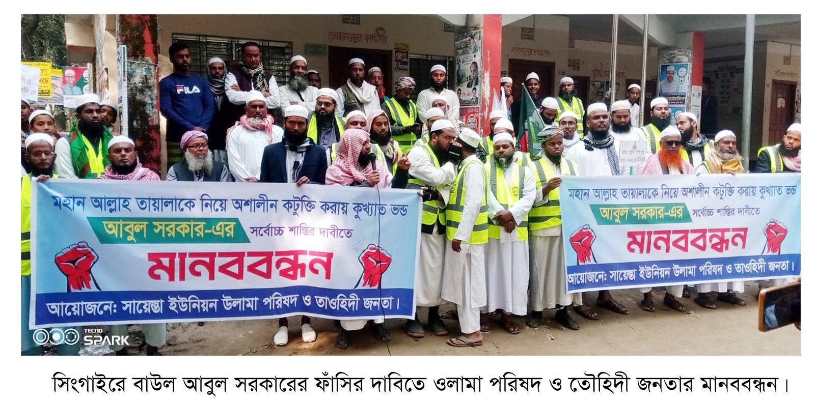 মহান আল্লাহ তায়ালাকে নিয়ে অশালীন কটুক্তি করায় কুখ্যাত ভন্ড আবুল সরকারের সর্বোচ্চ শাস্তি ও ফাঁসির দাবীতে মানিকগঞ্জের সিংগাইরে মানববন্ধন অনুষ্ঠিত হয়েছে।