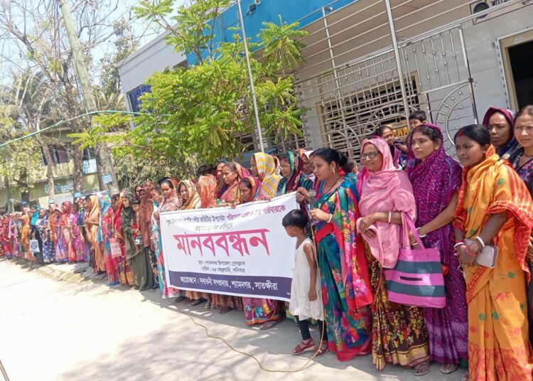 শ্যামনগরে সনাতনী সম্প্রদায়ের মানববন্ধন