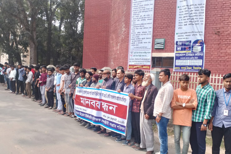 সিরাজগঞ্জে বিএসসি ইঞ্জিনিয়ারদের জন্য ৩৩% কৌটার প্রস্তাবের প্রতিবাদে মানববন্ধন