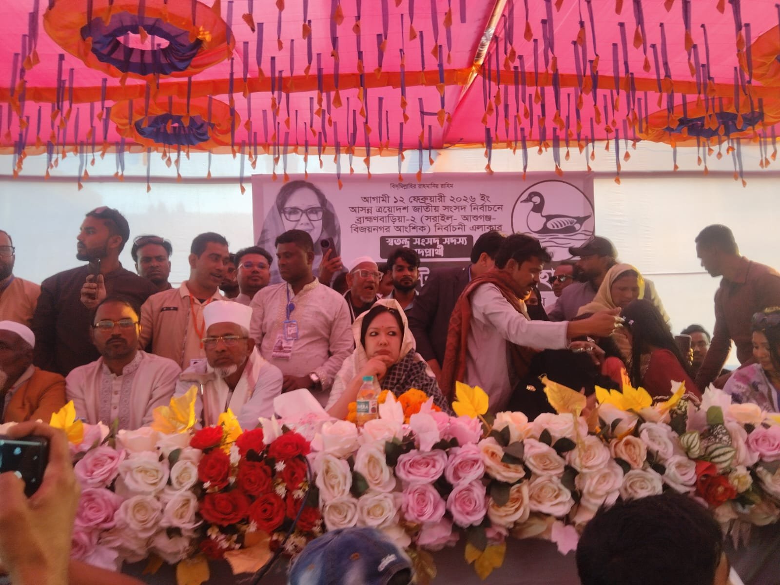 পথসভায় তিনি বলেন, সরকারি হাসপাতালে ডাক্তার নেই, যন্ত্রপাতি নষ্ট থাকে; আমি স্বাস্থ্যসেবাকে জনগণের দোরগোড়ায় পৌঁছে দেব। বেকারত্ব দূর করব এবং মা–বোনরা যাতে ঘরে বসে কিছু করতে পারে, তাদের স্বামী–সন্তানের পাশে দাড়ানোর ব্যবস্থা নিশ্চিত করব। প্রবাসীদের সমস্যা ও দাবি নিয়ে আমি সংসদে তাদের জন্য কথা বলব। এছাড়া, গ্যাস সরবরাহে ব্রাহ্মণবাড়িয়াবাসীকে অগ্রাধিকার দেওয়া হবে।