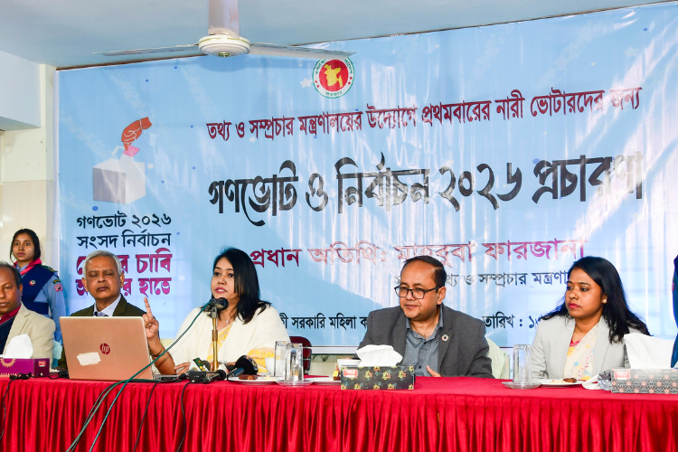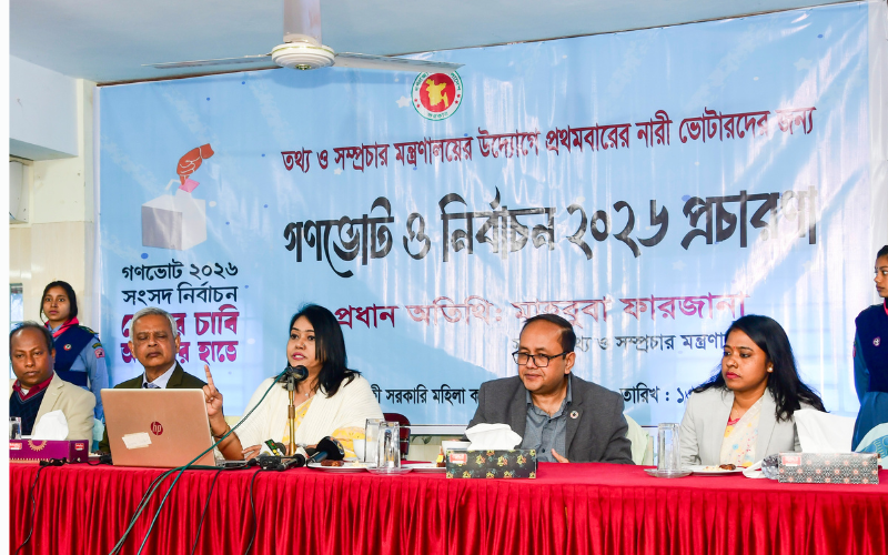 আজ মঙ্গলবার (১৩ জানুয়ারি) সকালে রাজশাহী সরকারি মহিলা কলেজ ও রাজশাহী কলেজে নারী ভোটার এবং প্রথমবারের ভোটারদের জন্য তথ্য ও সম্প্রচার মন্ত্রণালয় আয়োজিত ‘গণভোট ও নির্বাচন ২০২৬ প্রচারণা’ অনুষ্ঠানে প্রধান অতিথির বক্তৃতায় তিনি এসব কথা বলেন।