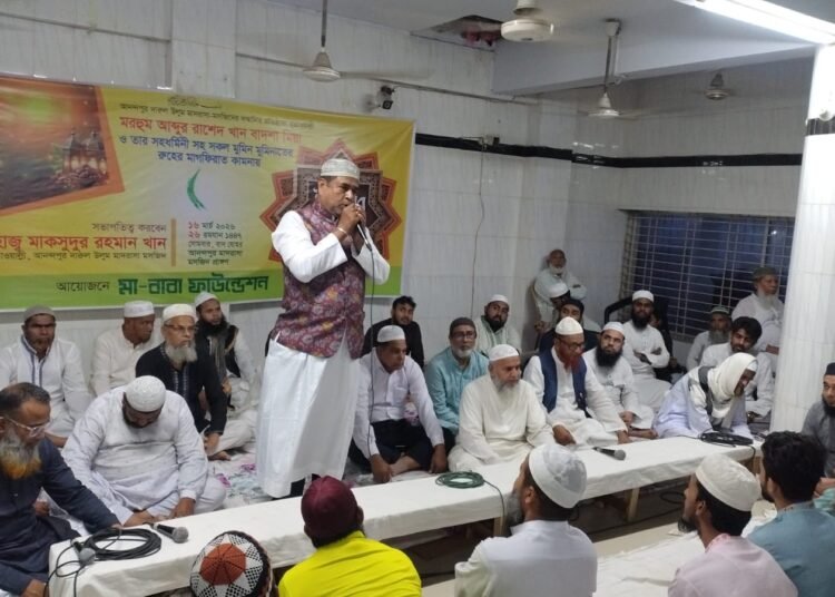 সাভারের আনন্দপুর দারুল উলুম মাদরাসা-মসজিদের সম্মানিত প্রতিষ্ঠাতা মুতাওয়াল্লী মরহুম আব্দুর রাশেদ খান বাদশা মিয়া ও তার সহধর্মিনীসহ সকল মুমিন-মুমিনাতের রুহের মাগফিরাত কামনায় ইফতার ও দোয়া মাহফিল অনুষ্ঠিত হয়েছে।