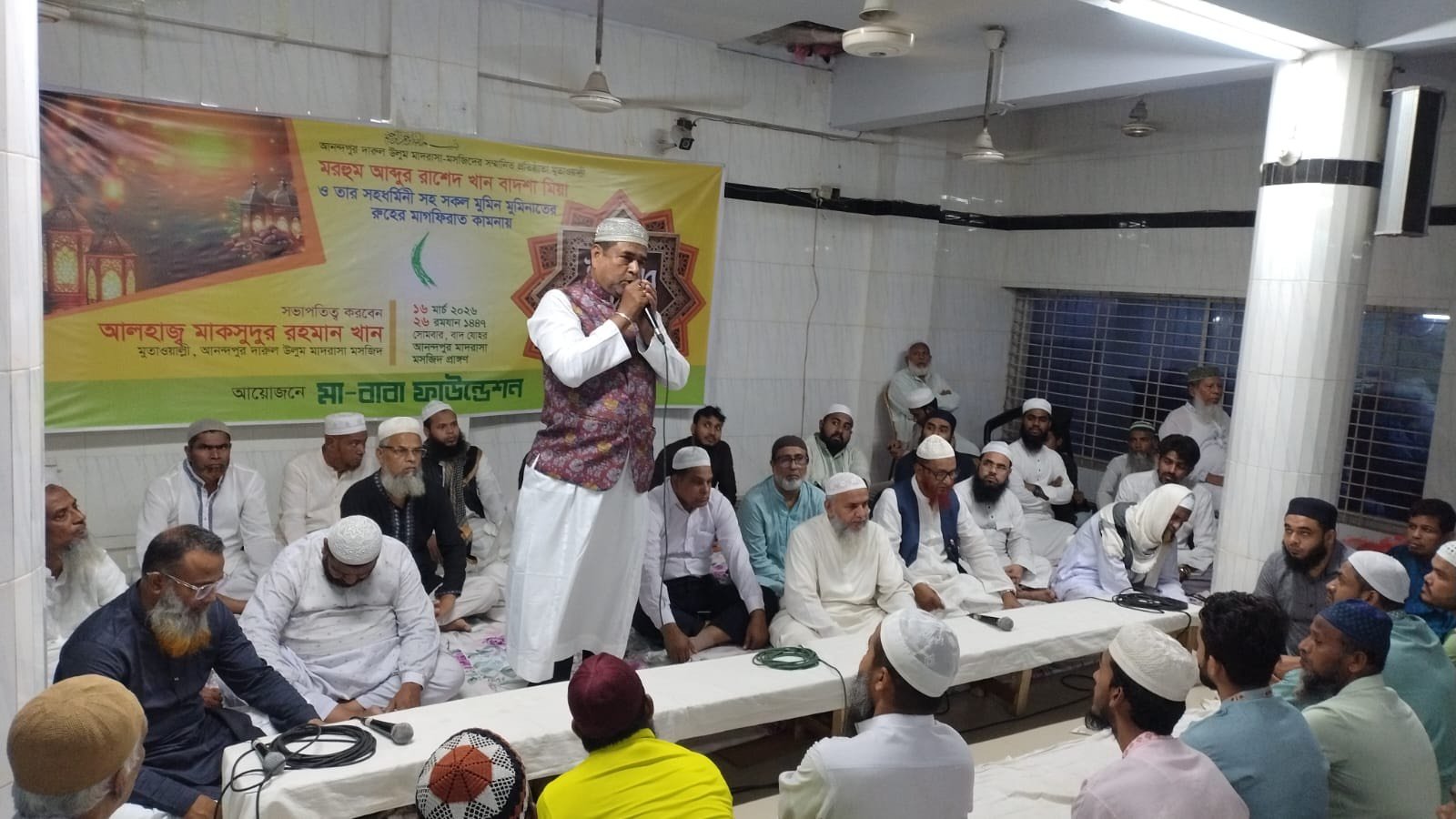 সোমবার সাভারের আনন্দপুর দারুল উলুম মাদরাসা মসজিদ প্রাঙ্গণে এই ইফতার ও দোয়া মাহফিলের আয়োজন করা হয়। অনুষ্ঠানের আয়োজন করে মা-বাবা ফাউন্ডেশন।