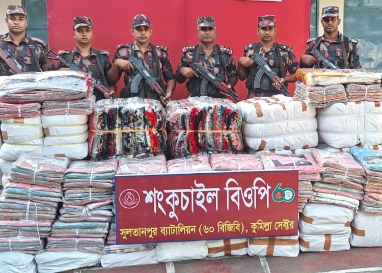 ব্রাহ্মণবাড়িয়া ও কুমিল্লা সীমান্তে বিশেষ অভিযান চালিয়ে প্রায় এক কোটি ১৫ লাখ ৩৭ হাজার টাকার ভারতীয় পণ্য জব্দ করেছে বর্ডার গার্ড বাংলাদেশ (বিজিবি)।শুক্রবার দুপুরে বিজিবির পক্ষ থেকে এক প্রেস বিজ্ঞপ্তিতে বিষয়টি নিশ্চিত করেছেন বিজিবি-৬০ ব্যাটালিয়নের অধিনায়ক লে. কর্ণেল মো. জিয়াউর রহমান। এর আগে বৃহস্পতিবার রাত থেকে শুত্রবার (৩১ অক্টোবর) ভোর পর্যন্ত ব্রাহ্মণবাড়িয়ার কসবা এবং কুমিল্লার ব্রাহ্মণপাড়া ও বুড়িচং উপজেলার সীমান্ত এলাকায় অভিযান চালিয়ে ভারতীয় উন্নত মানের শাড়ি ও খাদ্য সামগ্রী জব্দ করা হয়।