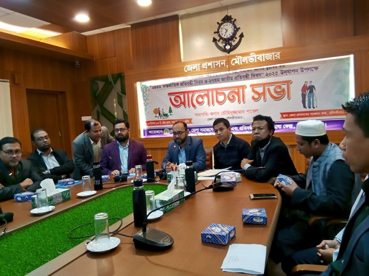 বুধবার (৩ ডিসেম্বর ২০২৫) সকালে দিবসটি উপলক্ষে মৌলভীবাজার জেলা প্রশাসন, জেলা সমাজসেবা কার্যালয় এবং প্রতিবন্ধী সেবা ও সাহায্য কেন্দ্রের আয়োজনে এবং জাতীয় প্রতিবন্ধী উন্নয়ন ফাউন্ডেশন ও বাংলাদেশ জাতীয় সমাজকল্যাণ পরিষদের সহযোগিতায় জেলা প্রশাসকের সম্মেলন কক্ষে সভায় সভাপতিত্ব করেন মৌলভীবাজার জেলা প্রশাসক তৌহিদুজ্জামান পাভেল।