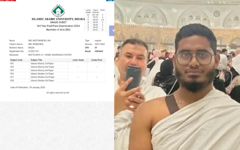 পরীক্ষা চলাকালিন সৌদি আরবে অবস্থান করায় এবং পরীক্ষা না দিয়েই ফাজিল পাশ করার বিষয়টি নিয়ে “বাংলা এফএম” ধারা বাহিক সংবাদ প্রকাশের পর ফাজিল পরীক্ষার্থী মোস্তাকিম বিল্লাহ পরীক্ষার ফলাফল পরিবর্তন করা হয়েছে। তার ফলাফলে মন্তব্য করা হয়েছে উইথহেল্ড। পূর্বে তার জিপিএ গ্রেড দেখানো হয়ে ছিলো ৩.২৫। সংশ্লিষ্ট ইসলামি স্টাডিজ বিষয়ে(বিষয় কোড-৪১৬) বিষয়ে পূর্বে তার গ্রেড “বি” প্রদর্শিত হলেও বর্তমানে গ্রেডের কলাম ফাঁকা।