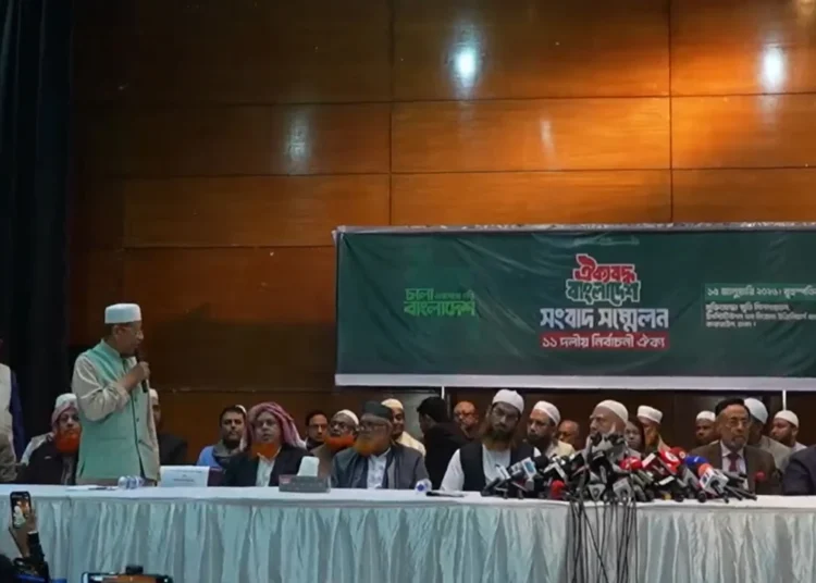 উল্লেখ্য, বাংলাদেশ জামায়াতে ইসলামীর নেতৃত্বাধীন ১১ দলীয় জোটে রয়েছে—চরমোনাই পীরের দল ইসলামী আন্দোলন বাংলাদেশ, জাতীয় নাগরিক পার্টি (এনসিপি), বাংলাদেশ খেলাফত আন্দোলন, খেলাফত মজলিস, খেলাফত আন্দোলন, নেজামে ইসলাম পার্টি, লিবারেল ডেমোক্রেটিক পার্টি (এলডিপি), জাতীয় গণতান্ত্রিক পার্টি (জাগপা), আমার বাংলাদেশ পার্টি (এবি পার্টি) ও বাংলাদেশ ডেভেলপমেন্ট পার্টি (বিডিপি)।