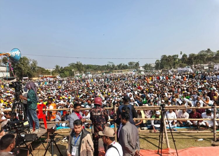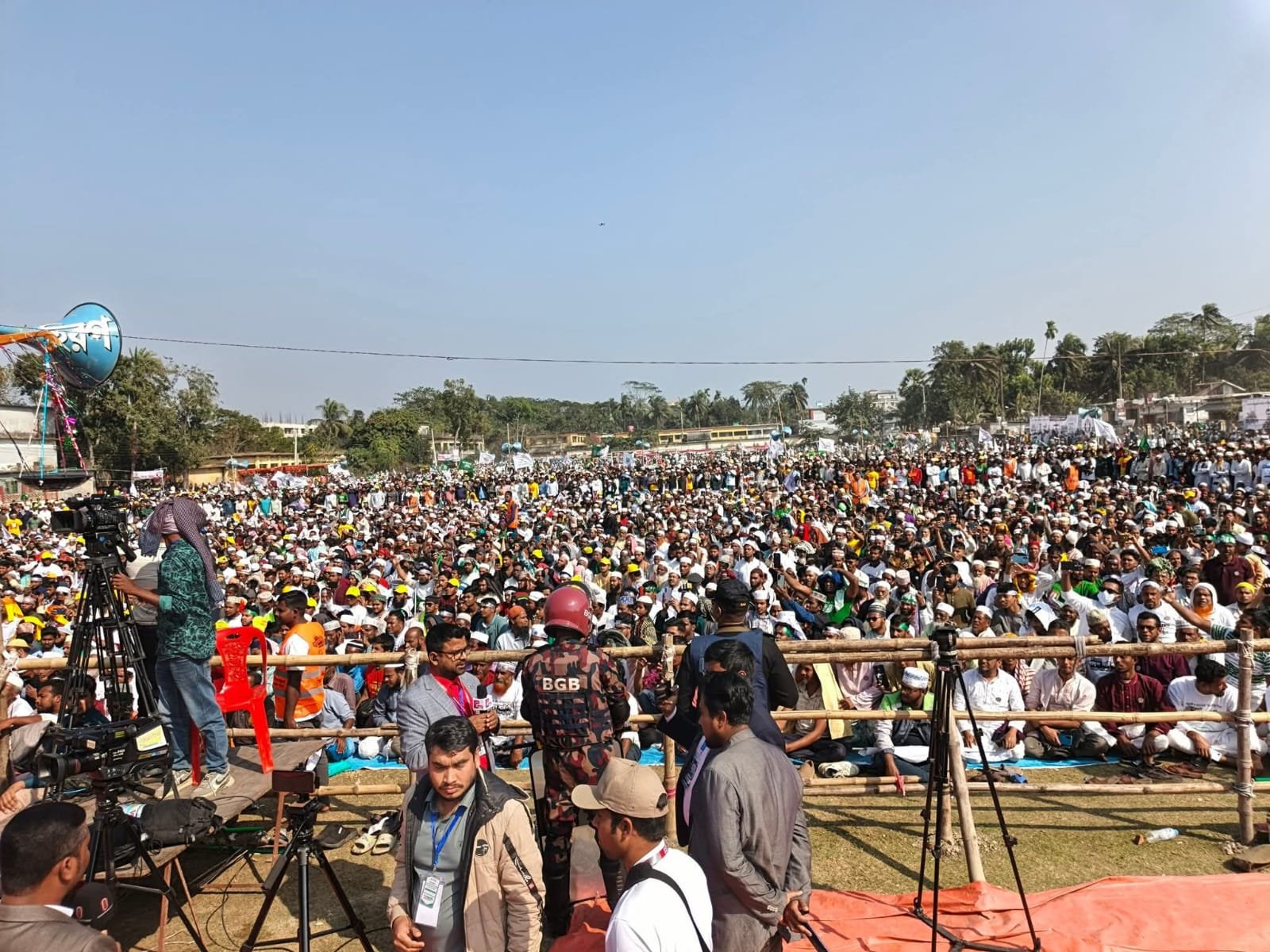 সকাল থেকেই পিরোজপুরের বিভিন্ন এলাকা থেকে খণ্ড খণ্ড মিছিল নিয়ে জনসভাস্থলে জড়ো হতে থাকেন দলটির বিপুল সংখ্যক নেতাকর্মী ও সাধারণ মানুষ। আমিরের আগমনে সভাস্থল কানায় কানায় পূর্ণ হয়ে যায়। মাঠ ছাড়িয়ে আশেপাশের সড়কেও মানুষের ভিড় লক্ষ্য করা গেছে। মঞ্চে উঠার পর ডা. শফিকুর রহমান হাত নেড়ে উপস্থিত নেতাকর্মীদের অভিবাদন জানান।