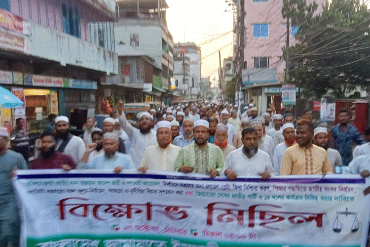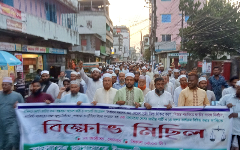 ৫দফা দাবিতে ঝালকাঠিতে জামায়াতে ইসলাম ও ইসলামী আন্দোলনের বিক্ষোভ মিছিল