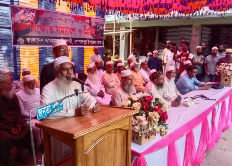 বুধবার (২৯ অক্টোবর) বিকেলে গোপালপুর থানার সামনে উপজেলা জামায়াতে ইসলামী’র উদ্যোগে এ বিক্ষোভ সমাবেশ ও মিছিল অনুষ্ঠিত হয়।