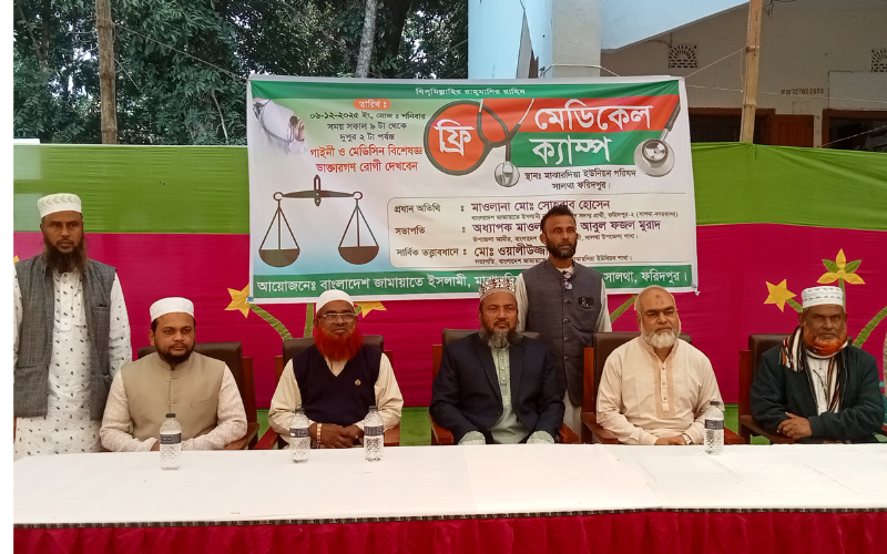 ​ফরিদপুরের সালথা উপজেলায় জামায়াতে ইসলামীর উদ্যোগে দিনব্যাপী ফ্রি মেডিকেল ক্যাম্প অনুষ্ঠিত হয়েছে। শনিবার (৬ ডিসেম্বর) উপজেলার মাঝারদিয়া ইউনিয়ন পরিষদ চত্বরে আয়োজিত এই ক্যাম্পে দরিদ্র ও সাধারণ মানুষকে বিনামূল্যে চিকিৎসা সেবা ও প্রয়োজনীয় ঔষধ প্রদান করা হয়।