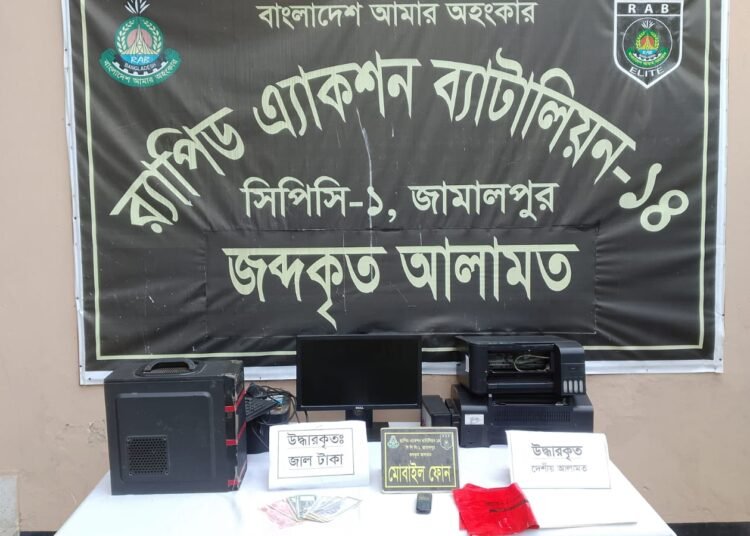 জামালপুরের র্যাব-১৪ শেরপুরের চাপাতলি গ্রাম থেকে জ¦াল টাকা তৈরির সামগ্রী ও নগদ টাকা উদ্ধার করে। একই সময় মোরশিদুল নামে জালিয়াতি চক্রের এক সদস্যকে গ্রেফতার করেছে র্যাব।