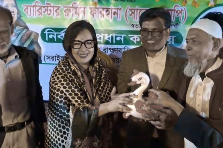 আসন্ন ত্রয়োদশ জাতীয় সংসদ নির্বাচনে ব্রাহ্মণবাড়িয়া-২ আসনের স্বতন্ত্র প্রার্থী রুমিন ফারহানাকে সমর্থন দেওয়ার ঘোষণা দিয়েছে জাতীয় পার্টি (জাপা)। সোমবার (৯ ফেব্রুয়ারি) রাত ১১টায় সরাইল উপজেলার শাহবাজপুরে রুমিন ফারহানা ও পার্টি নেতাদের যৌথ সংবাদ সম্মেলনে এ ঘোষণা দেওয়া হয়।