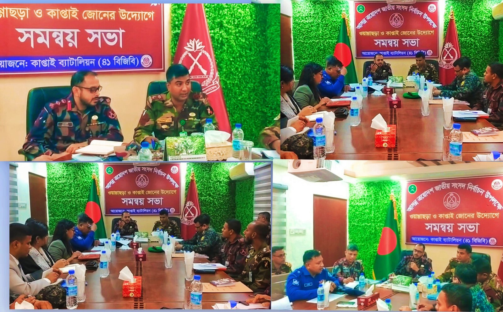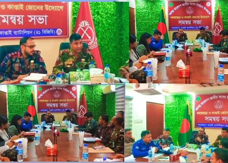 মঙ্গলবার (২৭ জানুয়ারি) বেলা সাড়ে ১১ টায় বর্ডার গার্ড বাংলাদেশ (বিজিবি) ও কাপ্তাই সেনা জোনের উদ্যোগে কাপ্তাই ব্যাটালিয়ন (৪১ বিজিবি) সদর দপ্তরে এই সভার আয়োজন করা হয়। সভায় নির্বাচনের সময় আইন-শৃঙ্খলা পরিস্থিতি স্বাভাবিক রাখা এবং যেকোনো ধরনের অপ্রীতিকর ঘটনা রোধে বিজিবি, সেনাবাহিনী ও পুলিশ প্রশাসনের পক্ষ থেকে কঠোর অবস্থানের ঘোষণা দেওয়া হয়। বিশেষ করে সীমান্ত এলাকা এবং দুর্গম জোনগুলোতে নিরাপত্তা ব্যবস্থা জোরদার করার বিষয়ে বিস্তারিত পরিকল্পনা গ্রহণ করা হয়েছে।
