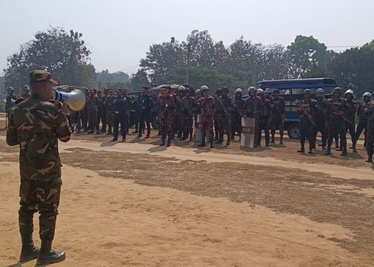 মাটিরাঙ্গায় শান্তিপূর্ণ নির্বাচন নিশ্চিত করতে যৌথ বাহিনীর মহড়া