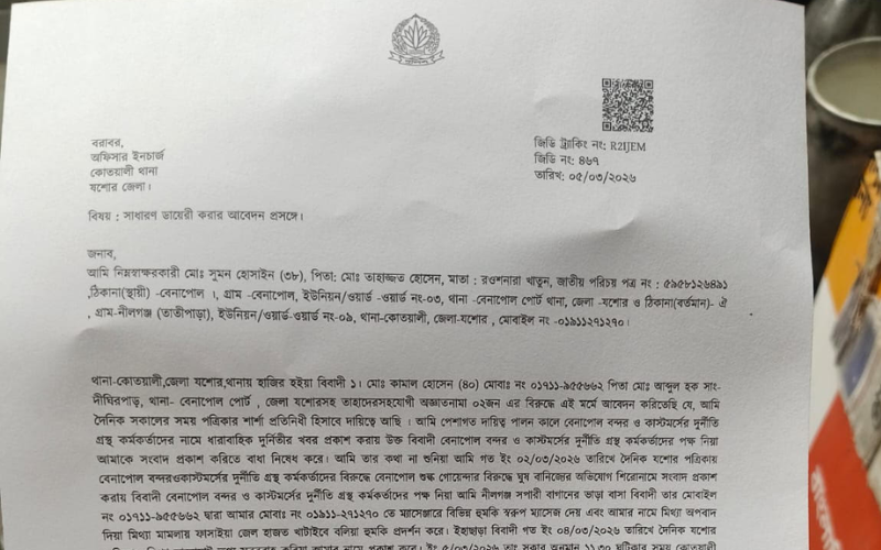 সকালের সময়ের শার্শা প্রতিনিধি সুমন হোসাইন প্রাণভয়ে বেনাপোল ছেড়ে স্বপরিবারে যশোর শহরে বসবাস করলেও এখনও তাকে মেরে ফেলার হুমকি প্রদর্শন ও মিথ্যা মামলা দিয়ে হয়রানি করার অভিযোগ পাওয়া গেছে। যশোরের বেনাপোল পৌর এলাকার তাহাজ্জত হোসেনের ছেলে সাংবাদিক সুমন হোসাইন গত ৫ মার্চ যশোর কোতোয়ালি মডেল থানায় দায়েরকৃত একটি জিডিতে একথা উল্লেখ করেছেন। যার জিডি নং- ৪৬৭।