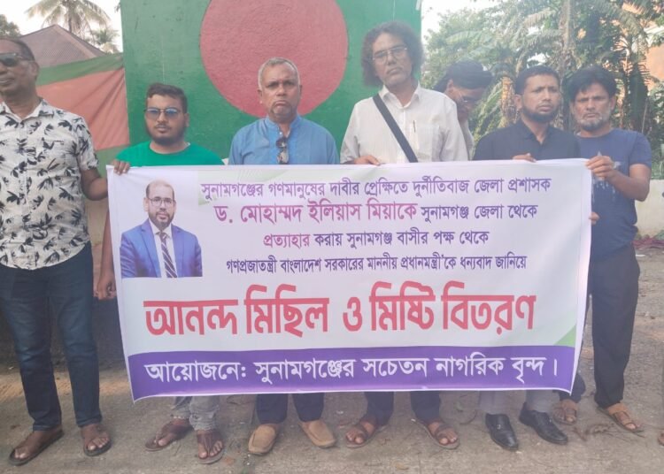 সুনামগঞ্জে ডিসি ইলিয়াসের বদলিতে আনন্দ মিছিল ও মিষ্টি বিতরণ
