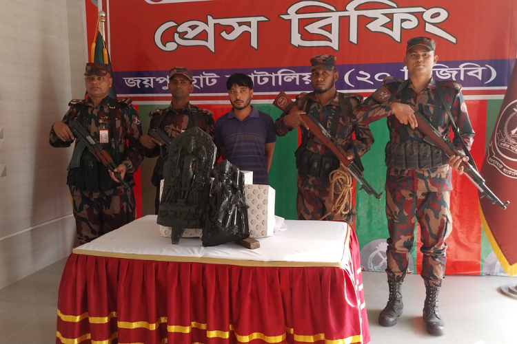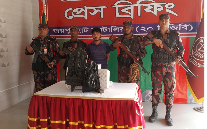 জয়পুরহাটে বিজিবির অভিযানে কষ্টিপাথরের ২টি মূর্তি উদ্ধার, আটক ১
