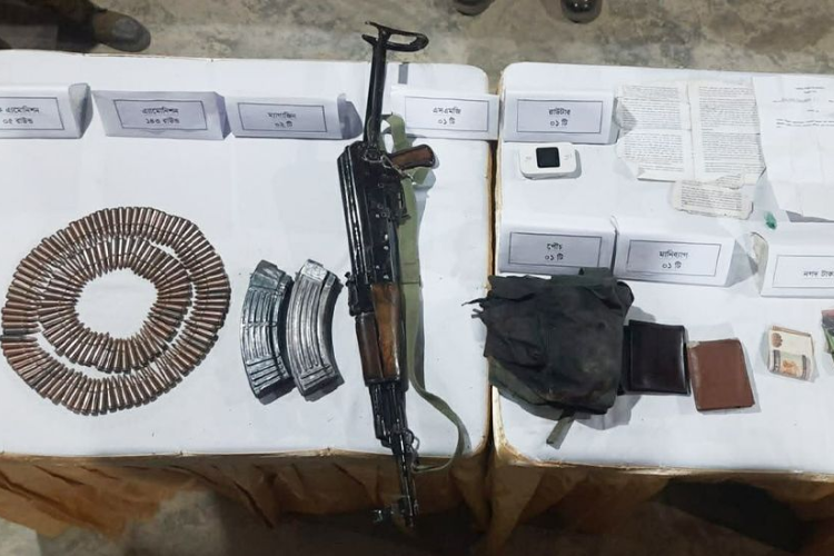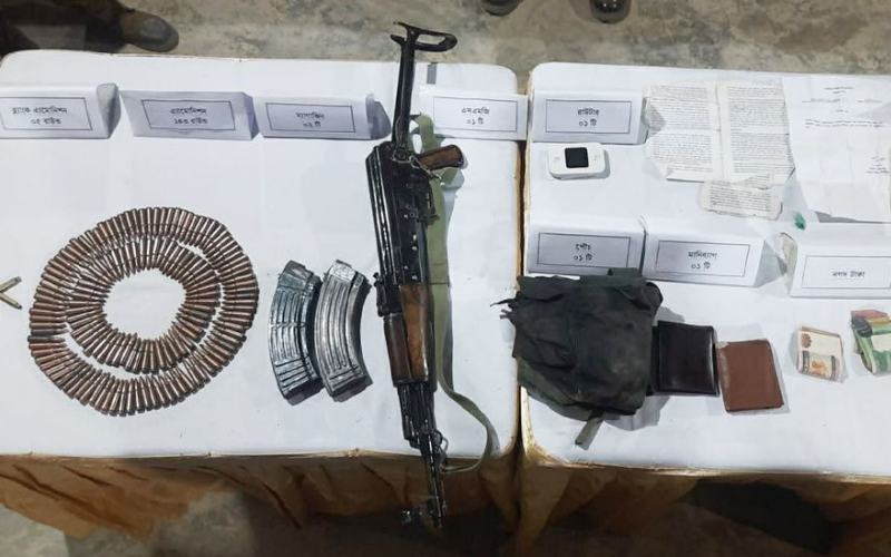 অভিযানে এলাকা থেকে ১টি সাবমেশিনগান (SMG), ২টি ম্যাগাজিন, ১৪৩ রাউন্ড অ্যামোনিশন, ১৪ রাউন্ড পিস্তল অ্যামোনিশন, ১টি পিস্তল থলি, ১টি রাউটার, ৫টি খালি SMG খোসা এবং কিছু ভারতীয় মুদ্রাসহ অন্যান্য সামগ্রী উদ্ধার করা হয়।