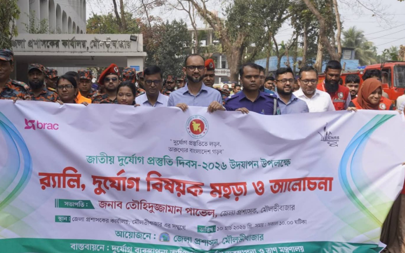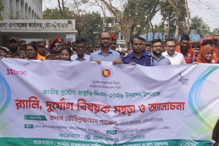 দুর্যোগ প্রস্তুতিতে লড়ব,তারুণ্যের বাংলাদেশ গড়ব”-এই প্রতিপাদ্যকে সামনে রেখে মঙ্গলবার (১০ মার্চ ২০২৬) মৌলভীবাজার জেলায় নানা কর্মসূচির মধ্য দিয়ে জাতীয় দুর্যোগ প্রস্তুতি দিবস পালন করা হয়েছে।