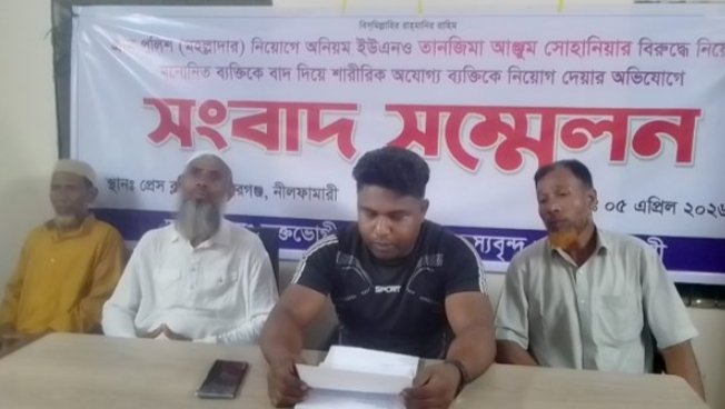 নীলফামারীর কিশোরগঞ্জ উপজেলায় গ্রাম পুলিশ নিয়োগে অনিয়ম করার অভিযোগ উঠেছে সদ্য বদলী হয়ে যাওয়া উপজেলা নির্বাহী অফিসারের বিরুদ্ধে। তিনি অর্থের বিনিময়ে অনুত্তীর্ণ প্রার্থীকে উপজেলার চাঁদখানা ইউনিয়নে নিয়োগ দিয়েছেন। নিয়োগের মৌখিক ও শারীরিক পরীক্ষায় উত্তীর্ণ হয়েও নিয়োগ বঞ্চিত একজন রবিবার (৫ এপ্রিল) বিকালে কিশোরগঞ্জ প্রেসক্লাবে সংবাদ সম্মেলন করে এই অভিযোগ তুলেছেন।