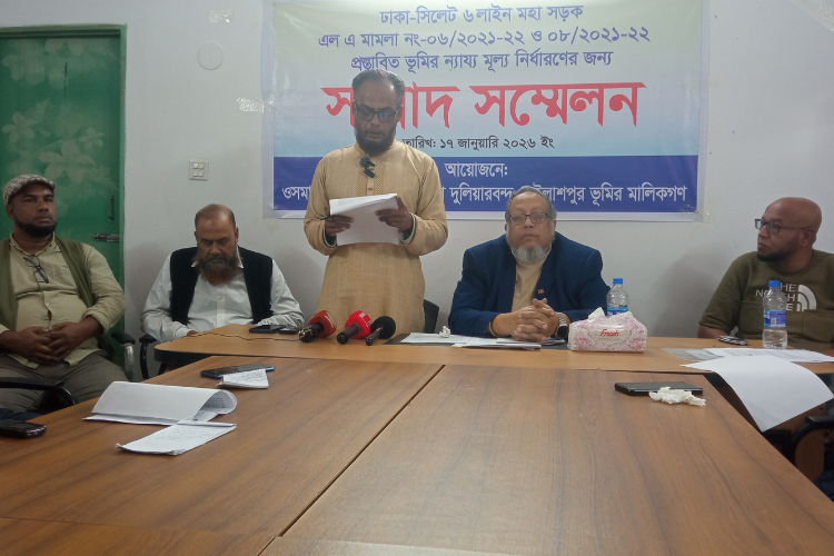 সিলেট-ঢাকা মহাসড়ক ৬ল্যান প্রকল্পের জন্য মালিকানা যেসব ভূমি অধিগ্রহণের প্রক্রিয়াধীন রয়েছে সেগুলোর মূল্য কম নির্ধারণ করা হয়েছে বলে অভিযোগ করেছেন ভুমির মালিকরা। গতকাল শনিবার ওসমানীনগর উপজেলা প্রেসক্লাবে আয়োজিত সংবাদ সম্মেলনের এই অভিযোগ উত্থাপন করেন তারা।