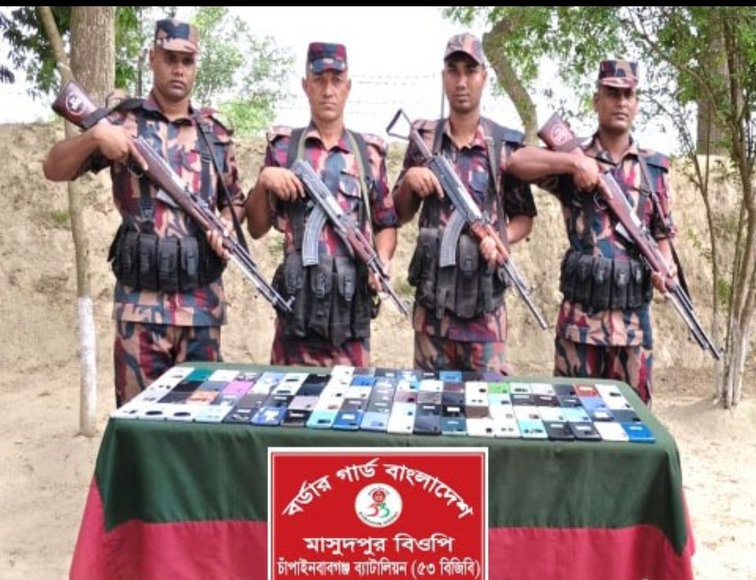 গতকাল ২৩ এপ্রিল  ৫৩ বিজিবি এর ১টি বিশেষ টহলদল অভিযান পরিচালনা করে ৮৮টি ভারতীয় মোবাইল ফোন জব্দ করে। অভিযানে ৫৩ বিজিবির অধীনস্থ মাসুদপুর বিওপির দায়িত্বপূর্ণ সীমান্ত শুন্য লাইন হতে রাতে  বাংলাদেশের অভ্যন্তরে চাঁপাইনবাবগঞ্জ জেলার শিবগঞ্জ থানাধীন মনাকষা ইউনিয়নের মনোহরপুর গ্রাম এলাকা হতে বিশেষ টহল দল ৮৮টি ভারতীয় মোবাইল ফোন জব্দ করে।