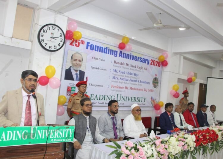 সিলেটের প্রথম বেসরকারি বিশ্ববিদ্যালয় লিডিং ইউনিভার্সিটি তার ২৫ বছরের সাফল্য উদযাপন করেছে। বুধবার (০৪ মার্চ ২০২৬) বিকাল ২টায় বিশ্ববিদ্যালয়ের শিক্ষক, শিক্ষার্থী, কর্মকর্তা ও কর্মচারিদের অংশগ্রহণে বর্ণাঢ্য শোভাযাত্রা অনুষ্ঠিত হয়।