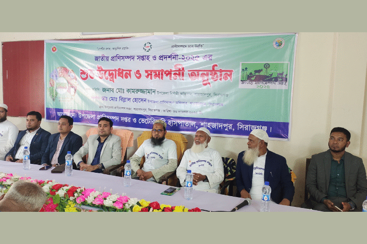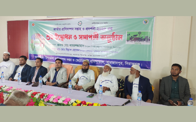 দেশীয় জাত, আধুনিক প্রযুক্তি, প্রাণী সম্পদ হবে উন্নতি” এই প্রতিপাদ্যকে সামনে রেখে সিরাজগঞ্জের শাহজাদপুর উপজেলা প্রাণিসম্পদ দপ্তর এর আয়োজনে, প্রাণিসম্পদ ও ডেইরি উন্নয়ন প্রকল্পের সহযোগিতায় উপজেলা প্রাণীসম্পদ চত্বরে সারা দেশের ন্যায় বুধবার সকাল ১০টায় সপ্তাহ ব্যাপী জাতীয় প্রাণিসম্পদ সপ্তাহ ও প্রদর্শনী ২০২৫ এর শুভ উদ্বোধন ও বর্ণাঢ্য রেলী আলোচনা অনুষ্ঠিত হয়েছে।