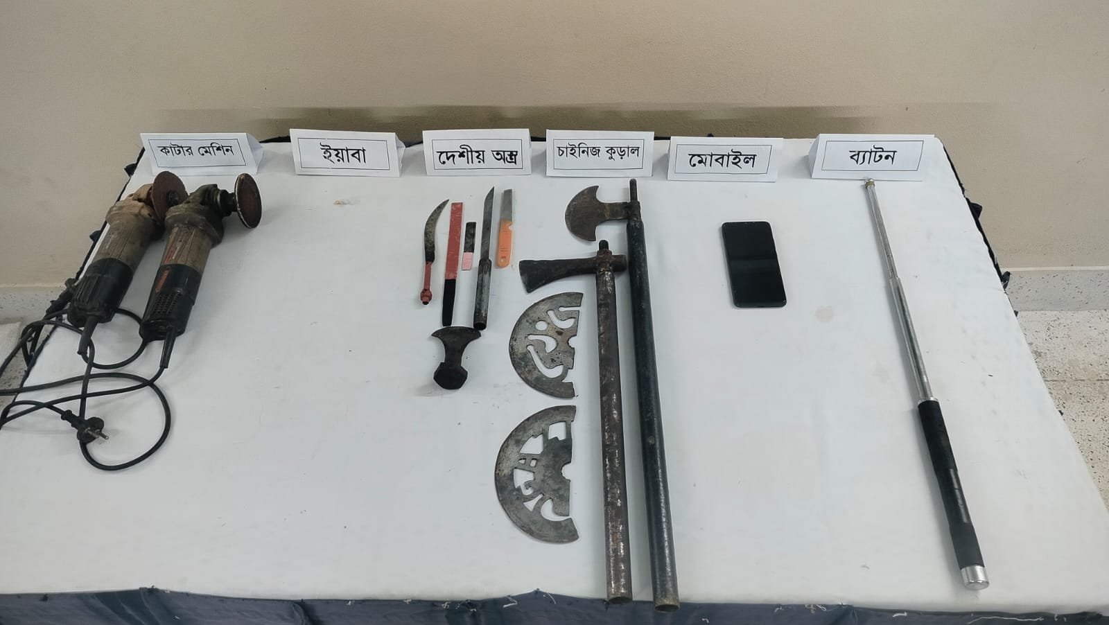 এসময় ২টি দেশীয় অস্ত্র তৈরির কাটিং মেশিন , ১ পিস ইয়াবা ও সেবন করার সরঞ্জামাদি , ৫টি দেশীয় চাকু , ২টি চাইনিজ কুড়াল , ১টি স্মার্টফোন এবং ১টি ব্যাটন উদ্ধার করা হয়। পরবর্তীতে আইনগত ব্যবস্থা গ্রহণের জন্য উদ্ধারকৃত মালামাল পাংশা মডেল থানার পুলিশের কাছে হস্তান্তর করা হয়েছে।