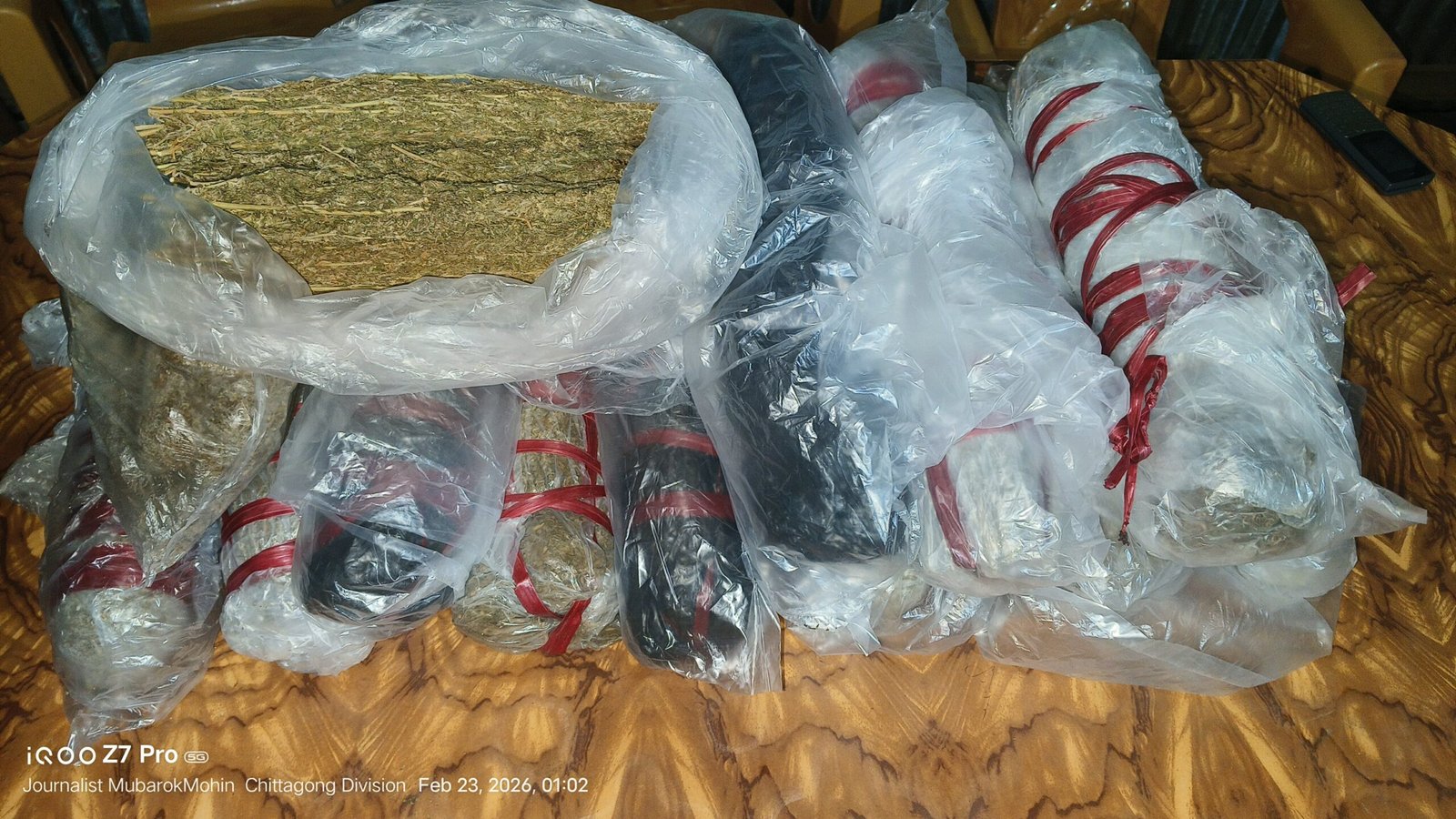 রাত আনুমানিক ১২টার দিকে সন্দেহভাজন কয়েকজন ব্যক্তি উপস্থিতি টের পেয়ে একটি ব্যাগ ফেলে দ্রুত পালিয়ে যায়। পরে পরিত্যক্ত ওই ব্যাগ তল্লাশি করে ১৩টি প্যাকেটে রাখা আনুমানিক ৬.৫ কেজি গাঁজা উদ্ধার করা হয়।