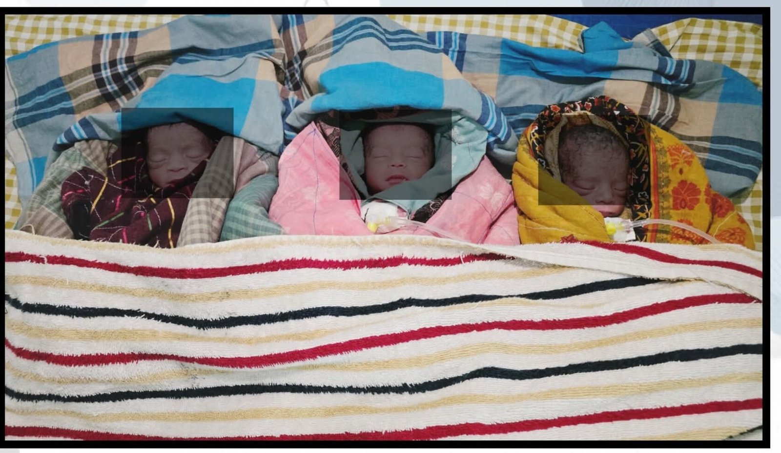 একসঙ্গে কোলজুড়ে তিন সন্তান উপহার পেয়ে খুশি গৃহবধূর পরিবার। তারা গৃহবধূ ও নবজাতকদের জন্য সকলের কাছে দোয়া চেয়েছেন।