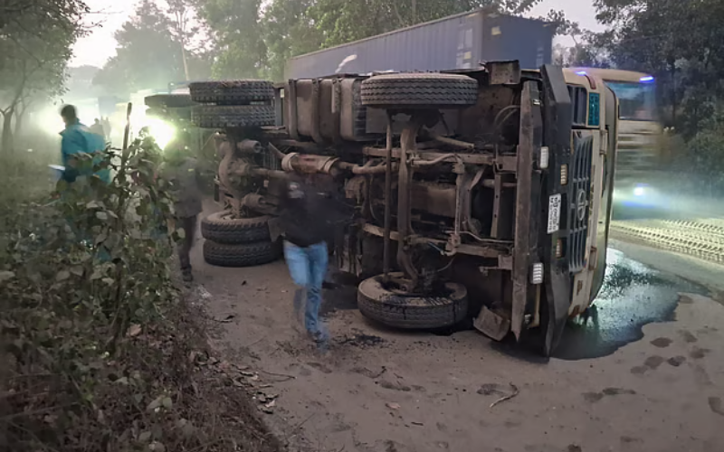 রাতের একটি মুহূর্তের অসতর্কতা—আর তাতেই ভোর থেকে সকাল পর্যন্ত থমকে গেল দেশের অন্যতম ব্যস্ত এই মহাসড়ক।