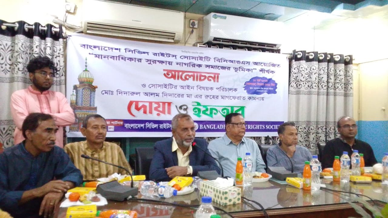 বাংলাদেশ সিভিল রাইটস্ সোসাইটি (বিসিআরএস) এর উদ্যোগে “মানবাধিকার সুরক্ষায় নাগরিক সমাজের ভূমিকা” শীর্ষক আলোচনা সভা, দোয়া ও ইফতার মাহফিল অনুষ্ঠিত হয়েছে।