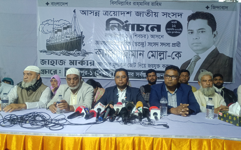 মাদারীপুর-১ ( শিবচর) আসনের স্বতন্ত্র প্রার্থী ‘জাহাজ’ প্রতীকের কামাল জামান নুর উদ্দিন মোল্লা নির্বাচনকালীন আইনশৃঙ্খলা বাহিনীর ভূমিকা নিয়ে অভিযোগ তুলেছেন।