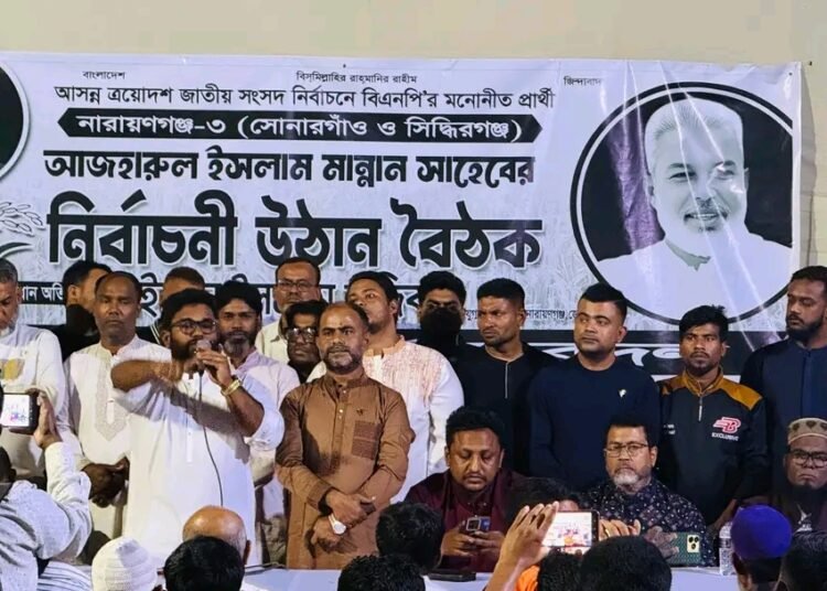 সিদ্ধিরগঞ্জে নারায়ণগঞ্জ সিটি করপোরেশনের ১নং ওয়ার্ডে “সবার আগে বাংলাদেশ” স্লোগানকে সামনে রেখে বিএনপির মনোনীত প্রার্থী আজহারুল ইসলাম মান্নানের পক্ষে এক নির্বাচনী উঠান বৈঠক অনুষ্ঠিত হয়েছে।