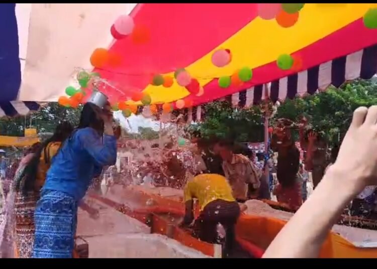একে জলকেলি বা জল উৎসবও বলা হয়। নানা বয়সের কয়েক হাজার মানুষ এই পানিবর্ষণে অংশ নেন। মাঠে দুই সারিতে মুখোমুখি দাঁড়িয়ে একদল তরুণ-তরুণী পরস্পরের দিকে পানি ছিটান। পরে বাকি সবাইও তাতে যোগ দেন। পানির বোতল কিংবা ওয়াটার গান—হাতের কাছে যা পান, তা দিয়েই ভেজান একে অপরকে। শহরজুড়ে চলেছে পানি খেলা। শিশু থেকে শুরু করে তরুণ-তরুণী এমনকি বয়স্ক মানুষেরাও একে অপরের গায়ে পানি ছিটিয়ে নতুন বছরকে বরণ করে নেন। আনন্দ-উদ্দীপনা আর সাংস্কৃতিক বৈচিত্র্যে বর্ণিল হয়ে ওঠে