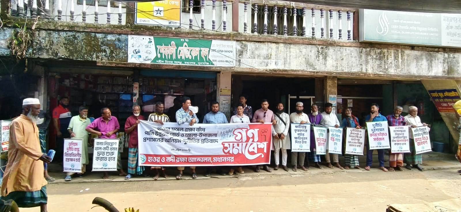৭ই এপ্রিল সকাল ১০টার মধ্যনগর শহীদ মিনার চত্বরে গণ-সমাবেশে হাওর ও নদী রক্ষা আন্দোলন জেলা কমিটির সাধারণ সম্পাদক মোঃওবাইদুল হক মিলনের সঞ্চালনায় সভাপতিত্ব করেন মধ্যনগর উপজেলার আহ্বায়ক আশরাফ উদ্দিন হিল্লোল।গণসমাবেশে অংশনেন টগা,মাইট্টাইন,কাইলানী,শালদীঘা, বোয়ালা,মরিচাউরী,বাইনচাপড়া সহ অসংখ্য হাওর পাড়ের কৃষক।