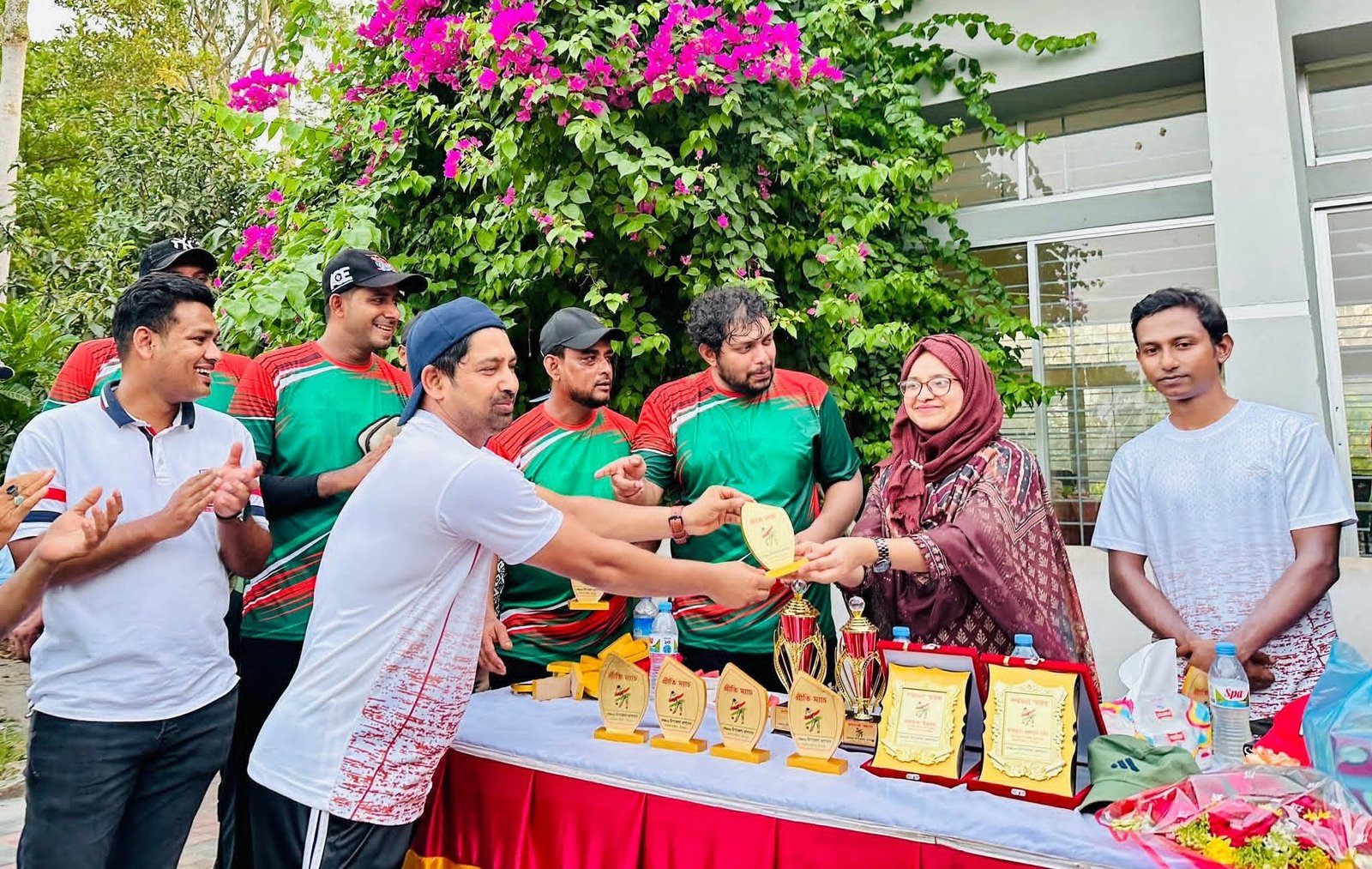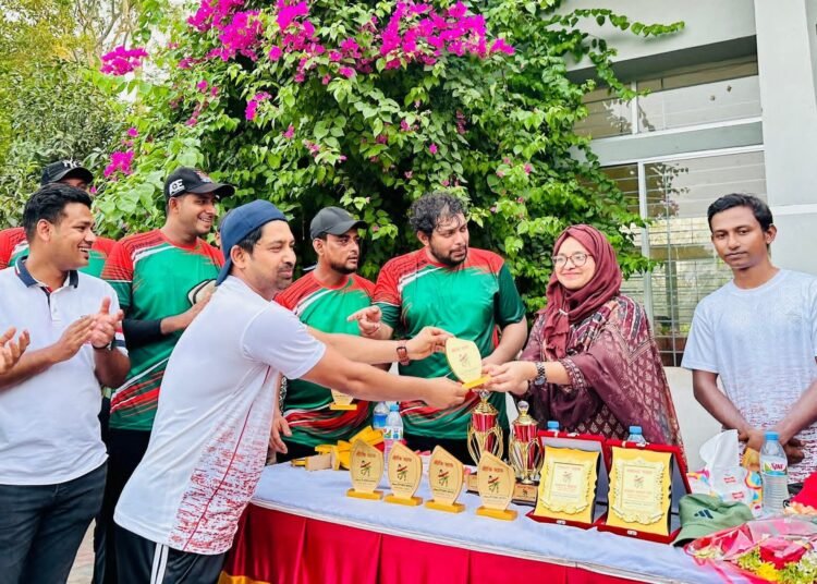 ম্যাচ শেষে বিজয়ীদের হাতে ট্রফি তুলে দেয়া হয়।
