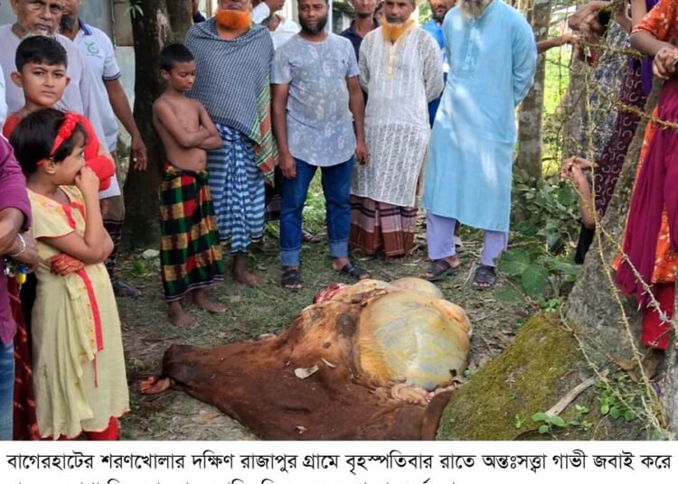 বাগেরহাটের শরণখোলায় অন্তঃসত্ত্বা গাভী জবাই করে মাংস ও মাথা নিয়ে গেছে দুর্বৃত্তরা