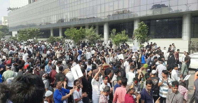 প্রতিষ্ঠানটির এক কর্মকর্তা যুগান্তরকে বলেন, “হঠাৎ করে ভাঙচুর শুরু হয়েছে। রাস্তা থেকে কয়েকশ বিক্ষোভকারী অবস্থান নিয়ে ভবনে ইটপাটকেল ছুঁড়ছে। এতে ভবনের বিভিন্ন কাঁচ ভেঙে গেছে। ছুটি হওয়ার পরেও আমরা কেউ বের হতে পারছি না।
