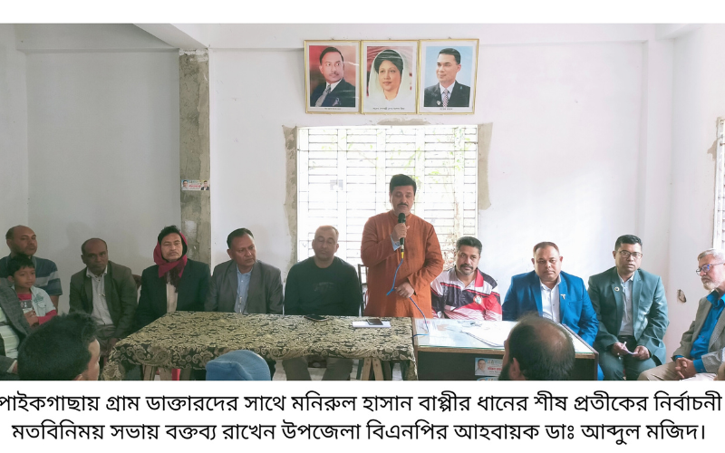 পাইকগাছায় গ্রাম ডাক্তারদের সংগঠন আরএমপি ওয়েলফেয়ার সোসাইটির নেতৃবৃন্দের সঙ্গে মতবিনিময় করেছেন খুলনা-৬ (পাইকগাছা-কয়রা) আসনের ধানের শীষ প্রতীকের বিএনপির প্রার্থী এসএম মনিরুল হাসান বাপ্পী। রোববার (১ ফেব্রুয়ারি) সকালে উপজেলা বিএনপির নির্বাচনী কার্যালয়ে আয়োজিত এ সভায় তিনি ভার্চুয়ালি যুক্ত হয়ে গ্রাম ডাক্তারদের সঙ্গে মতবিনিময় করেন।
