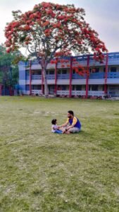 ছবি: কৃষ্ণচূড়ার লাল ফুলে সেজে উঠেছে নাগাইশ সরকারি কলেজ প্রাঙ্গণ।