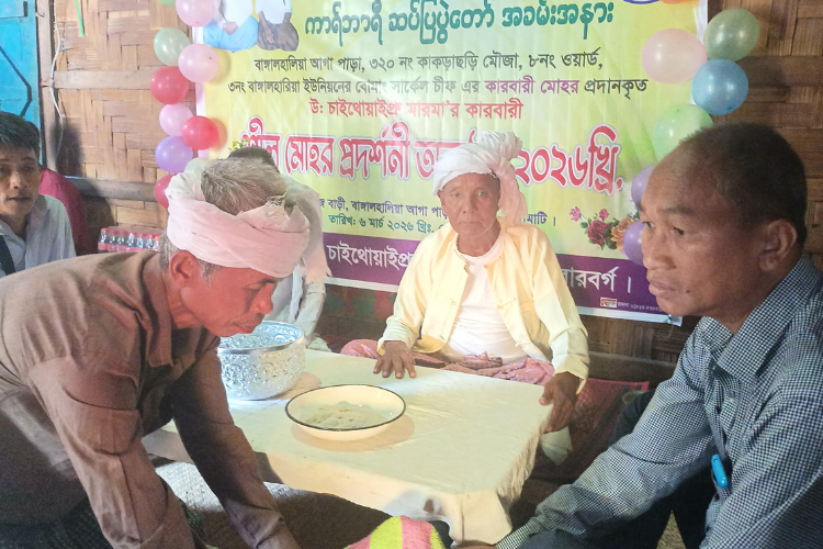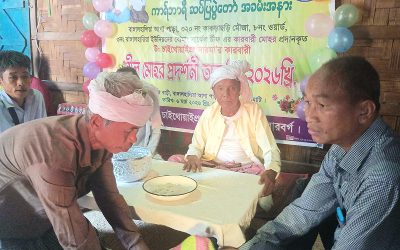 রাঙ্গামাটি জেলা রাজস্থলী উপজেলা ৩২০ নং কাকড়াছড়ি মৌজা অধীনে বোমাং রাজা কর্তৃক নিয়োগ প্রাপ্ত প্রধান পাড়া কারবারী আগা পাড়া নিবাসী উ: চাইথোয়াইপ্রু মারমা ছাইপ্রা বা শীলমোহর প্রদর্শনী অনুষ্ঠান হয়।