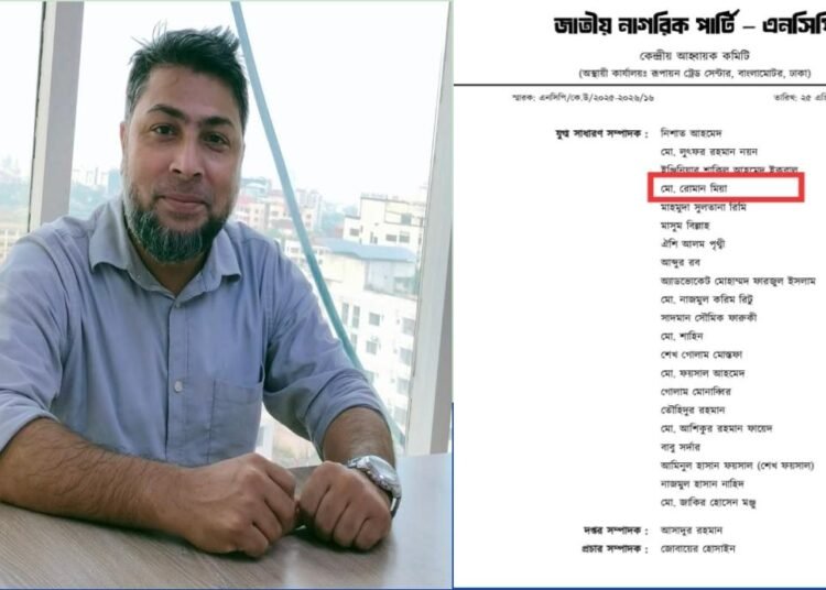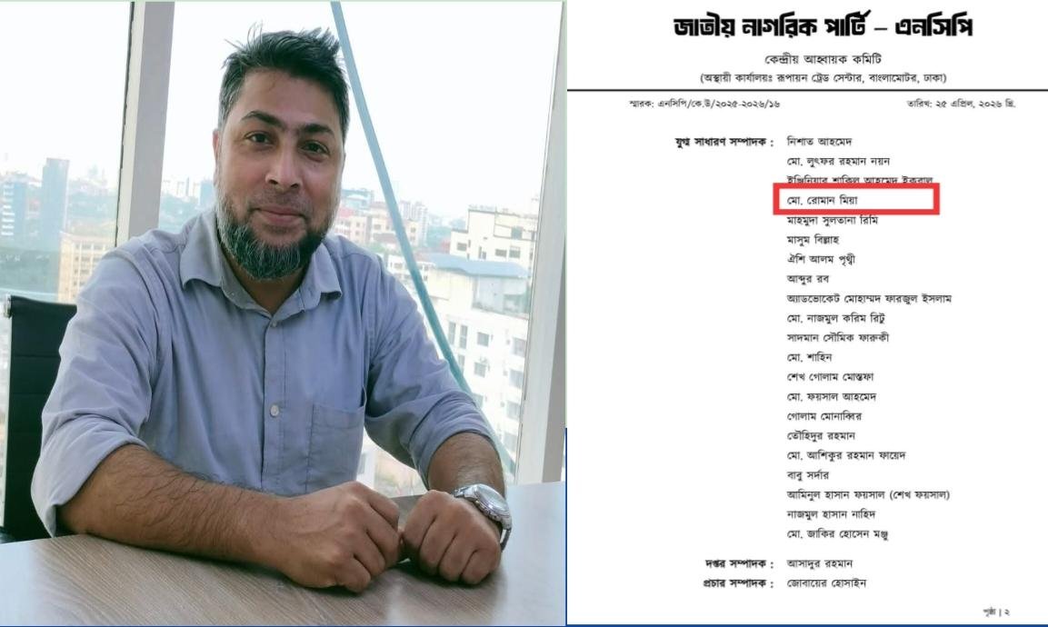 নরসিংদীর কৃতি সন্তান মো. রোমান মিয়া জাতীয় নাগরিক পার্টি (এনসিপি)-এর যুব সংগঠন ‘জাতীয় যুবশক্তি’র কেন্দ্রীয় কমিটির যুগ্ম সাধারণ সম্পাদক হিসেবে দায়িত্ব পেয়েছেন। তার এই অর্জন শুধু ব্যক্তিগত সাফল্য নয়, বরং জেলার তরুণদের জন্য একটি অনুপ্রেরণার দৃষ্টান্ত হয়ে উঠেছে।