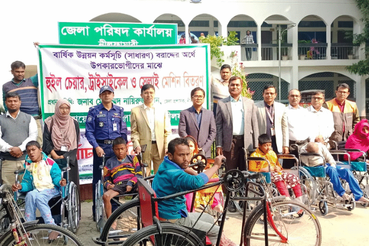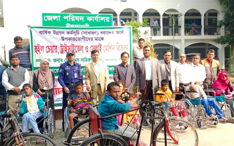 সভা শেষে জেলা পরিষদের বার্ষিক উন্নয়ন কর্মসূচির অংশ হিসেবে সেলাই মেশিন, হুইল চেয়ার, ট্রাই সাইকেল ও জেলা প্রশাসনের উদ্যোগে কম্বল বিতরণ করেন জেলা প্রশাসক। জেলা পরিষদের প্রধান নির্বাহী কর্মকর্তা দীপঙ্কর রায় জানান, ৯৬জনকে সেলাই মেশিন, ৯০জনকে হুইল চেয়ার, ২০জনকে ট্রাই সাইকেল ও ১’শ জনকে কম্বল প্রদান করা হচ্ছে।