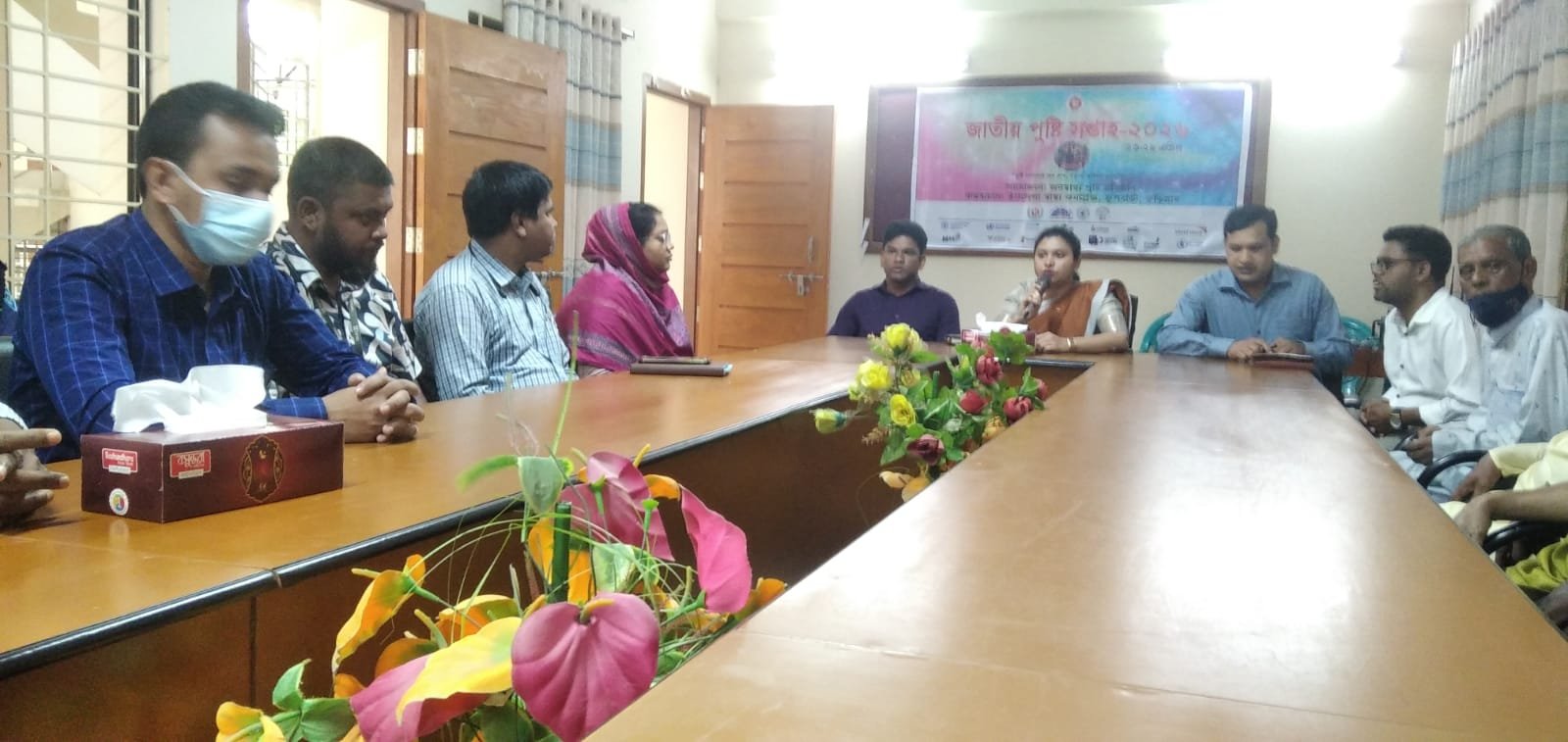 এরপর উপজেলা পরিষদ হলরুমে উপজেলা নির্বাহী অফিসারের সভাপতিত্বে আলোচনা সভা অনুষ্ঠিত হয়। শুরুতেই পুষ্টি বিষয়ক ভিডিও কনটেন্ট উপস্থাপন করেন মেডিকেল অফিসার (ডিজিজ কন্ট্রোল) ডাঃ আব্দুল্লাহ আল নাহিদ বুলবুল। সভায় বক্তব্য রাখেন উপজেলা স্বাস্থ্য ও পরিবার পরিকল্পনা কর্মকর্তা ডাঃ নরদেব রায়, উপজেলা প্রাণিসম্পদ কর্মকর্তা চন্দন কুমার সরকার, মৎস্য কর্মকর্তা হাফিজুর রহমান, পরিবার পরিকল্পনা কর্মকর্তা ডাঃ ফেরদৌসি খাতুন, উপজেলা যুবদল ও ছাত্রদলের সাবেক সভাপতি শামসুজ্জামান হাসু, উপজেলা জামায়াতের সেক্রেটারী মাওলানা আব্দুর রহমান, উপজেলা এনসিপির আহ্বায়ক নাজমুল ফেরদৌস লাভলু, উপজেলা প্রেসক্লাবের সভাপতি প্রভাষক জাকারিয়া মিঞা, ব্র্যাকের স্বাস্থ্যকর্মী মোখলেছুর রহমান, টিএমএসএস এর পুষ্টিবিদ ওমর ফারুক প্রমূখ। ২৩ থেকে ২৯ এপ্রিল এ উপলক্ষ্যে বিভিন্ন কর্মসূচি পালন করবে উপজেলা স্বাস্থ্য বিভাগ। সভায় আরও উপস্থিত ছিলেন উপজেলা মুক্তিযোদ্ধা সংসদের আহ্বায়ক মজিবর রহমান, উপজেলা বিএনপির সাবেক সিনিয়র সহসভাপতি লোকমান হোসেন সরকার, উপজেলা জামায়াতের আমীর মাওলানা আব্দুল মালেকসহ বিভিন্ন প্রতিষ্ঠানের শিক্ষার্থী, এনজিওকর্মী ও সুধীজন।