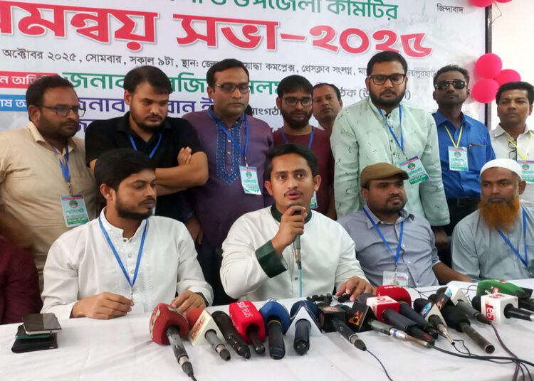 সোমবার (২০ অক্টোবর) দুপুরে জয়পুরহাট শহরের মুক্তিযোদ্ধা কমপ্লেক্স সম্মেলন কক্ষে এনসিপির জেলা ও উপজেলা কমিটির সমন্বয় সভা শেষে সাংবাদিকদের তিনি এসব কথা বলেন।