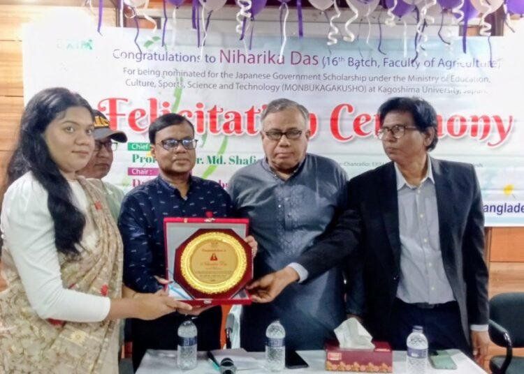 এক্সিম ব্যাংক কৃষি বিশ্ববিদ্যালয় বাংলাদেশ-এর কৃষি অনুষদের ১৬তম ব্যাচের এই শিক্ষার্থী জাপানের কাগোশিমা বিশ্ববিদ্যালয়ে পড়াশোনার জন্য জাপান সরকারের ‘মনবুকাগাকুশো (MEXT)’ স্কলারশিপে মনোনীত হয়েছেন।